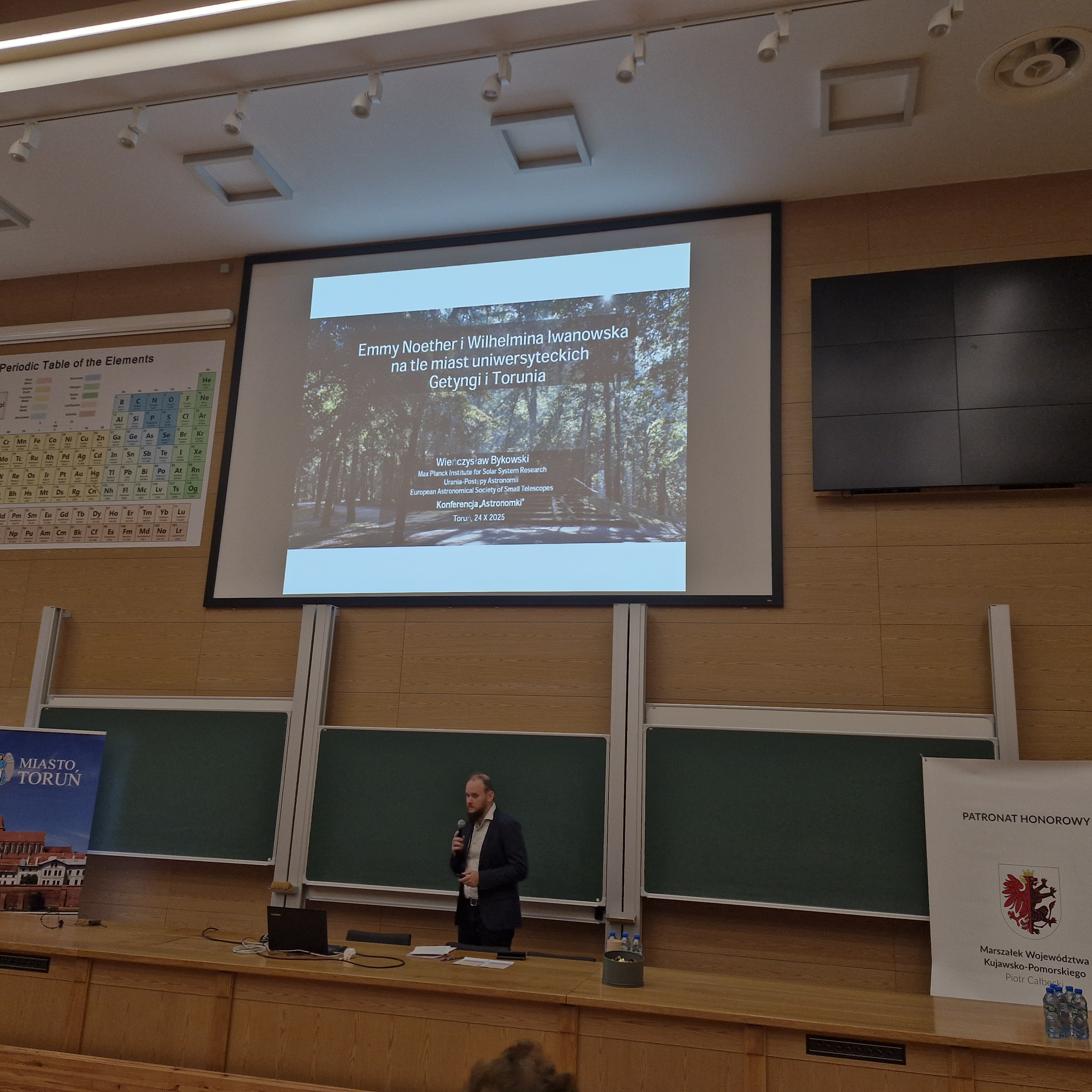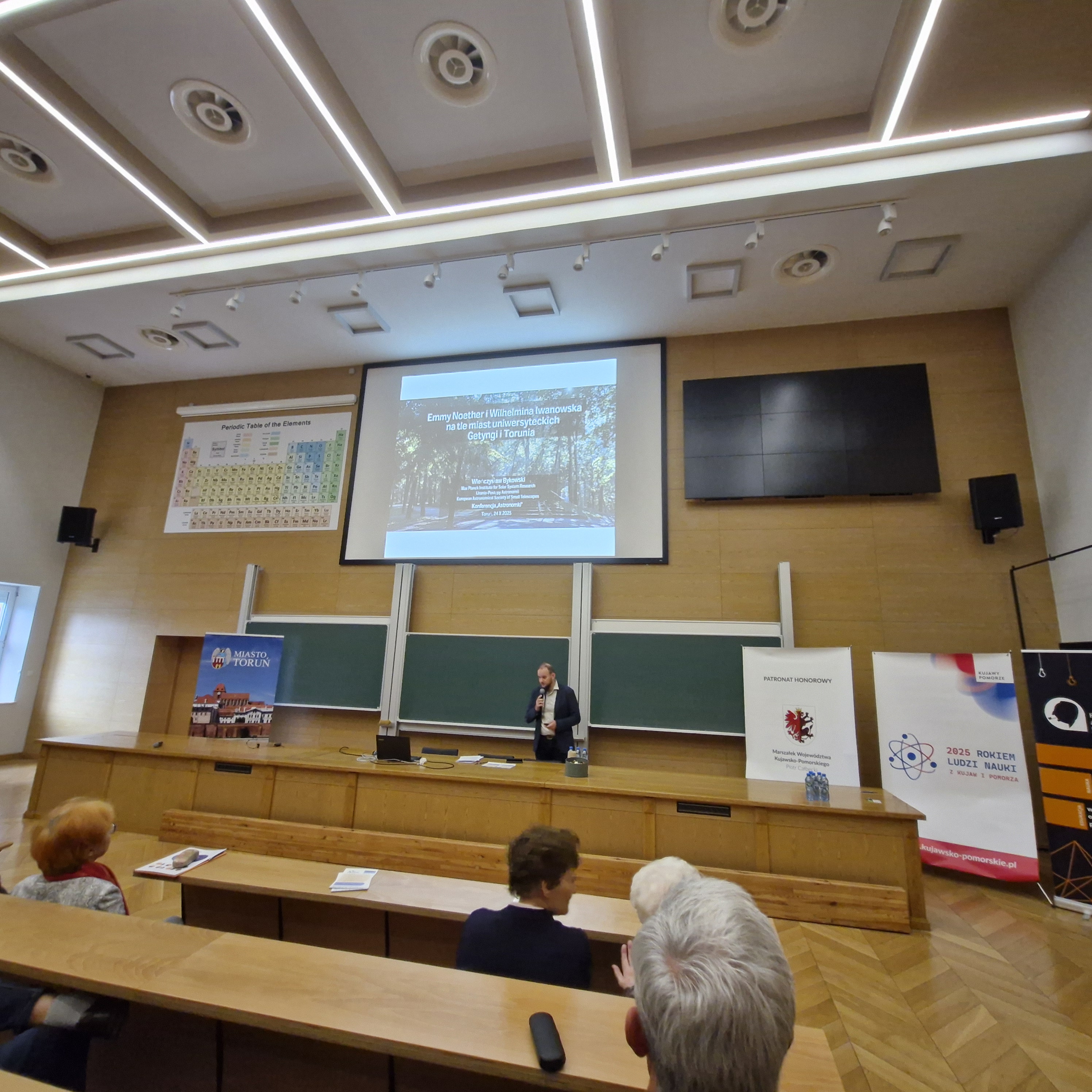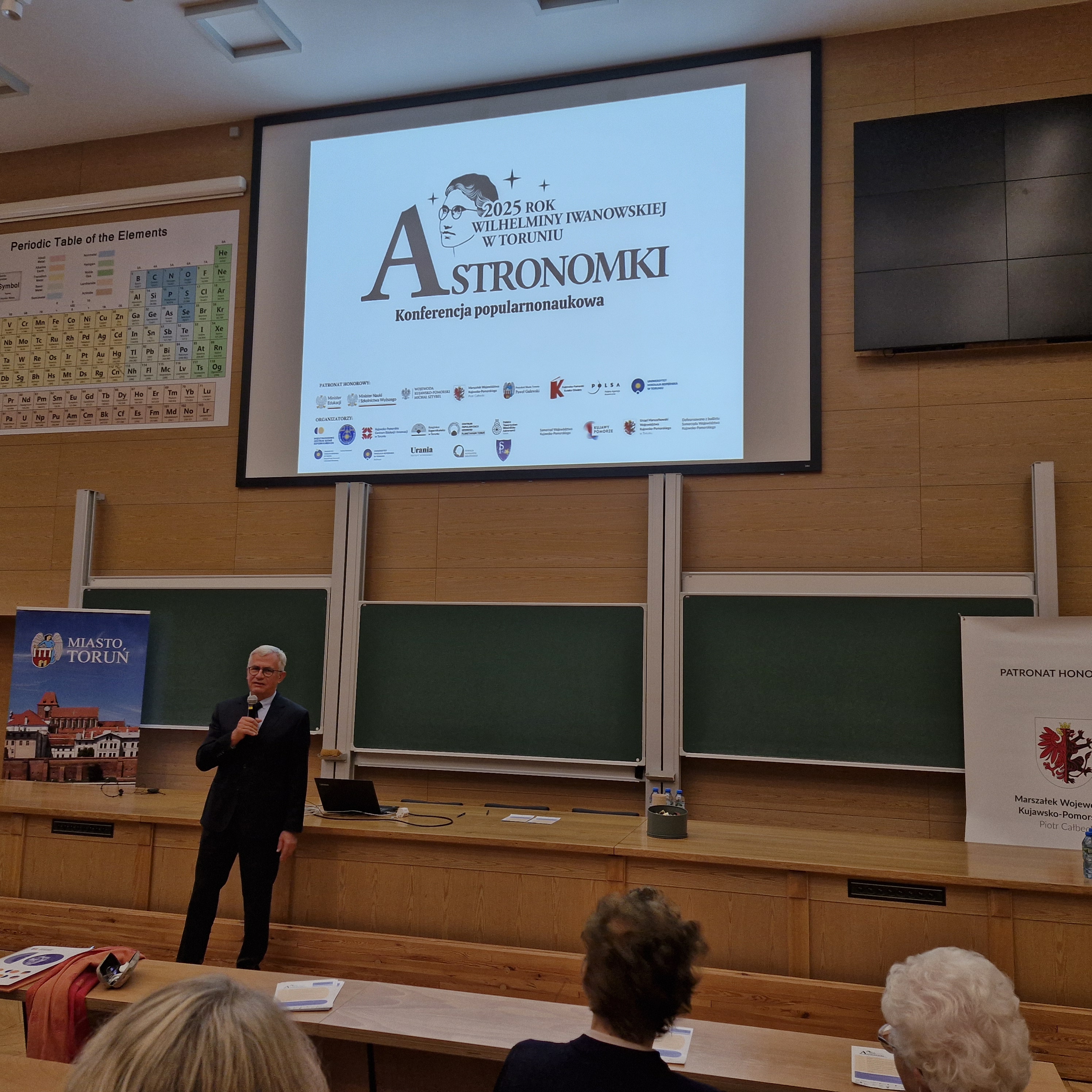 W ramach Roku Wilhelminy Iwanowskiej zorganizowano konferencję poświęconą jednej z twórczyń toruńskiej astronomii. Wydarzenie otworzył referat prof. Michała Tomczaka, który przedstawił zagadnienie udziału kobiet w nauce, opierając się na materiałach Słownika biograficznego astronomów polskich. W dalszej kolejności głos zabrał Pan Andrzej Bilicki, przedstawiciel rodziny prof. Iwanowskiej, który opowiedział o wspomnieniach, jakie ma z wizyt u cioci.