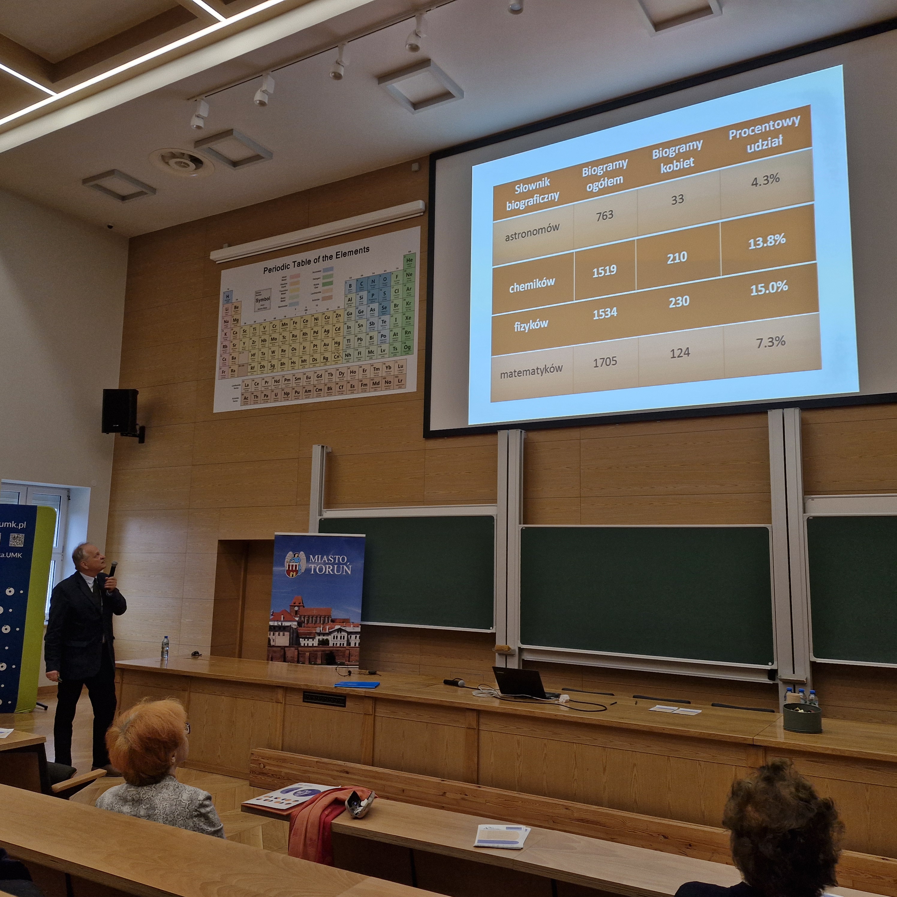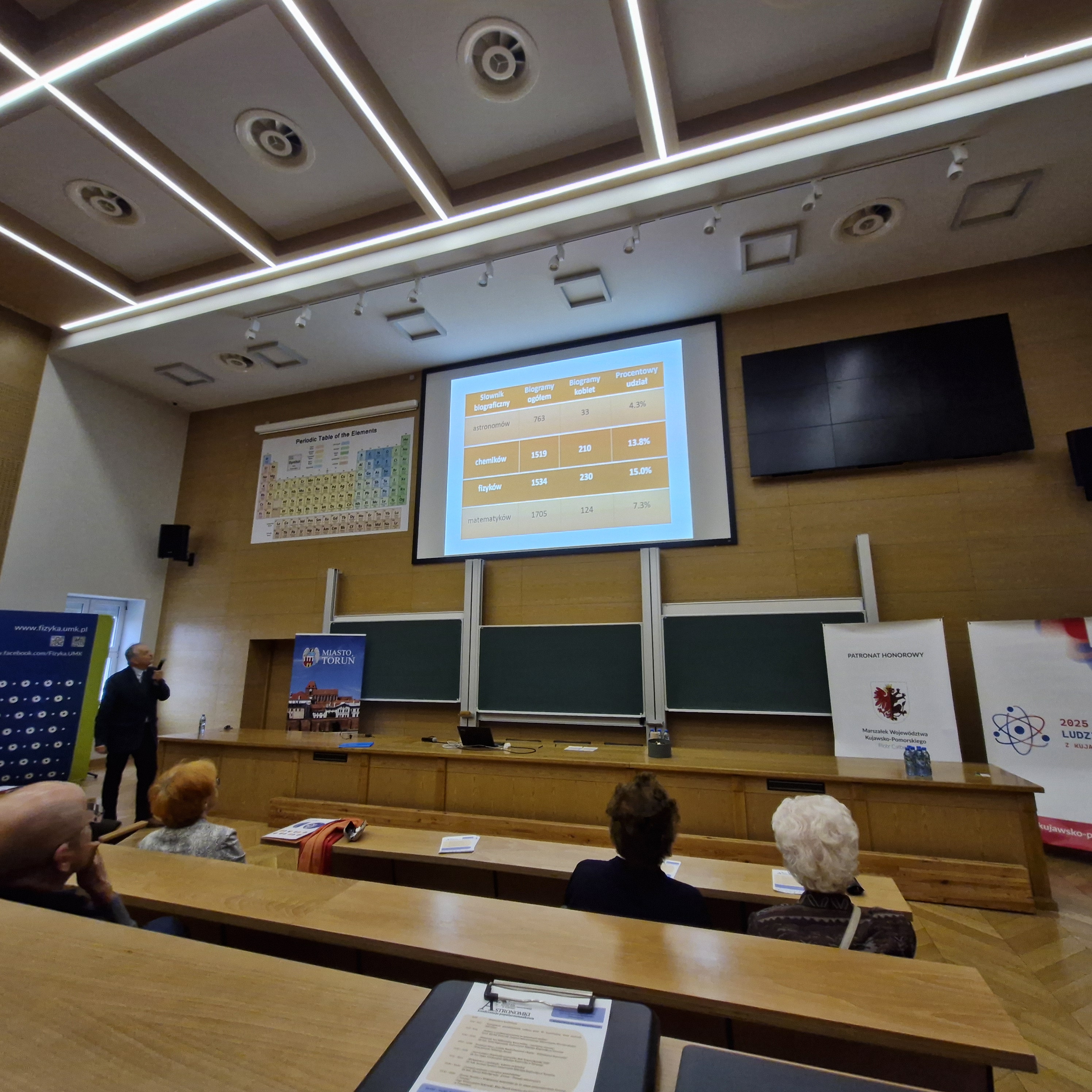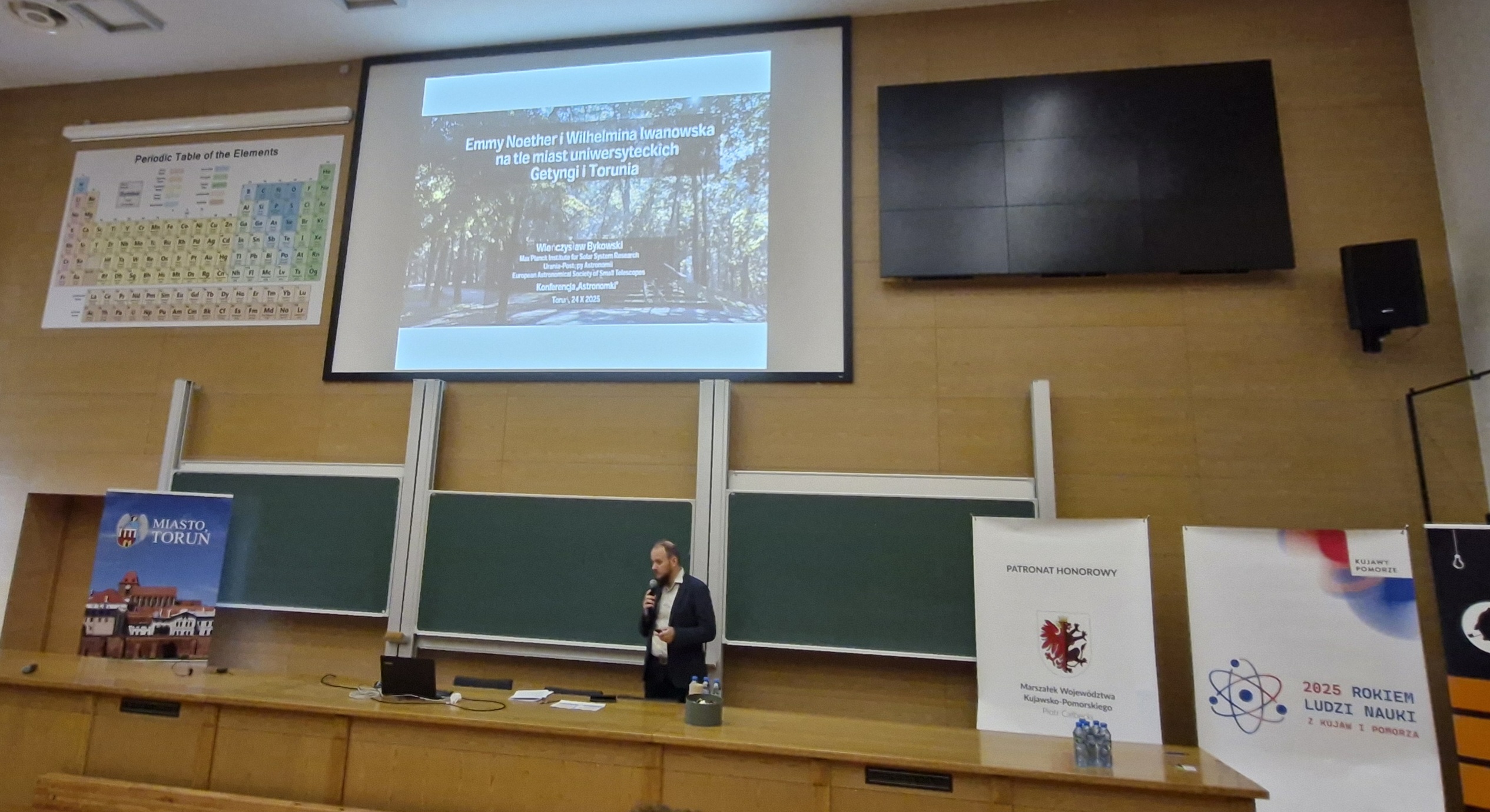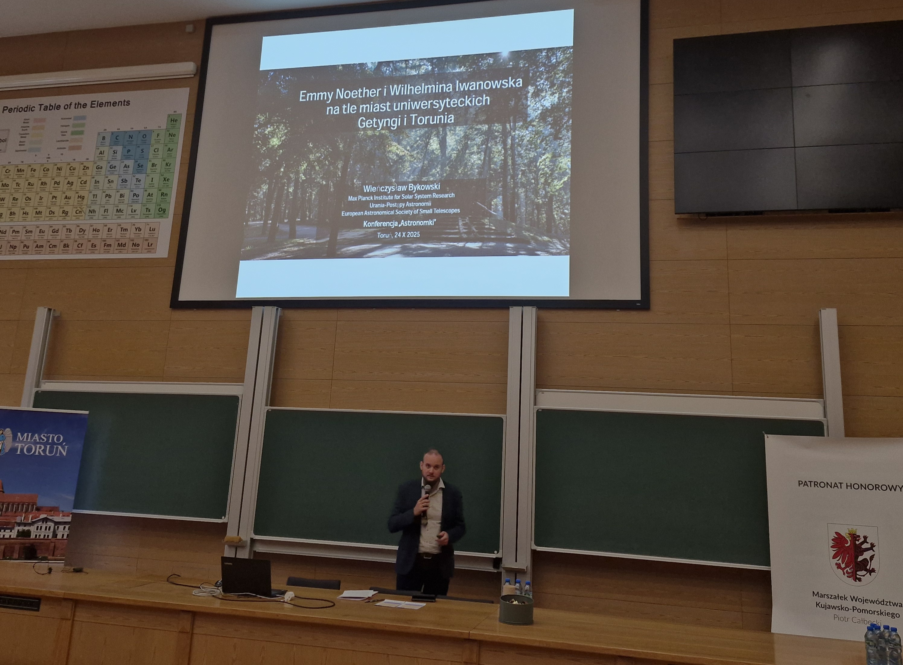 W ramach Roku Wilhelminy Iwanowskiej zorganizowano konferencję poświęconą jednej z twórczyń toruńskiej astronomii. Wydarzenie otworzył referat prof. Michała Tomczaka, który przedstawił zagadnienie udziału kobiet w nauce, opierając się na materiałach Słownika biograficznego astronomów polskich. W dalszej kolejności głos zabrał Pan Andrzej Bilicki, przedstawiciel rodziny prof. Iwanowskiej, który opowiedział o wspomnieniach, jakie ma z wizyt u cioci.